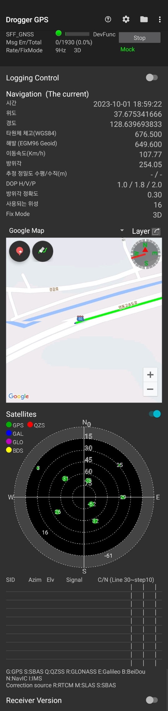 휴대폰은 1Hz로 동작하는데 자작 GPS는 10Hz로 동작하게 설정을 해서 휴대폰에 연결하면 부드럽게 트랙을 따라 라인을 그려서 주행데이터에 더 많은 데이터가 어쩌고 저쩌고