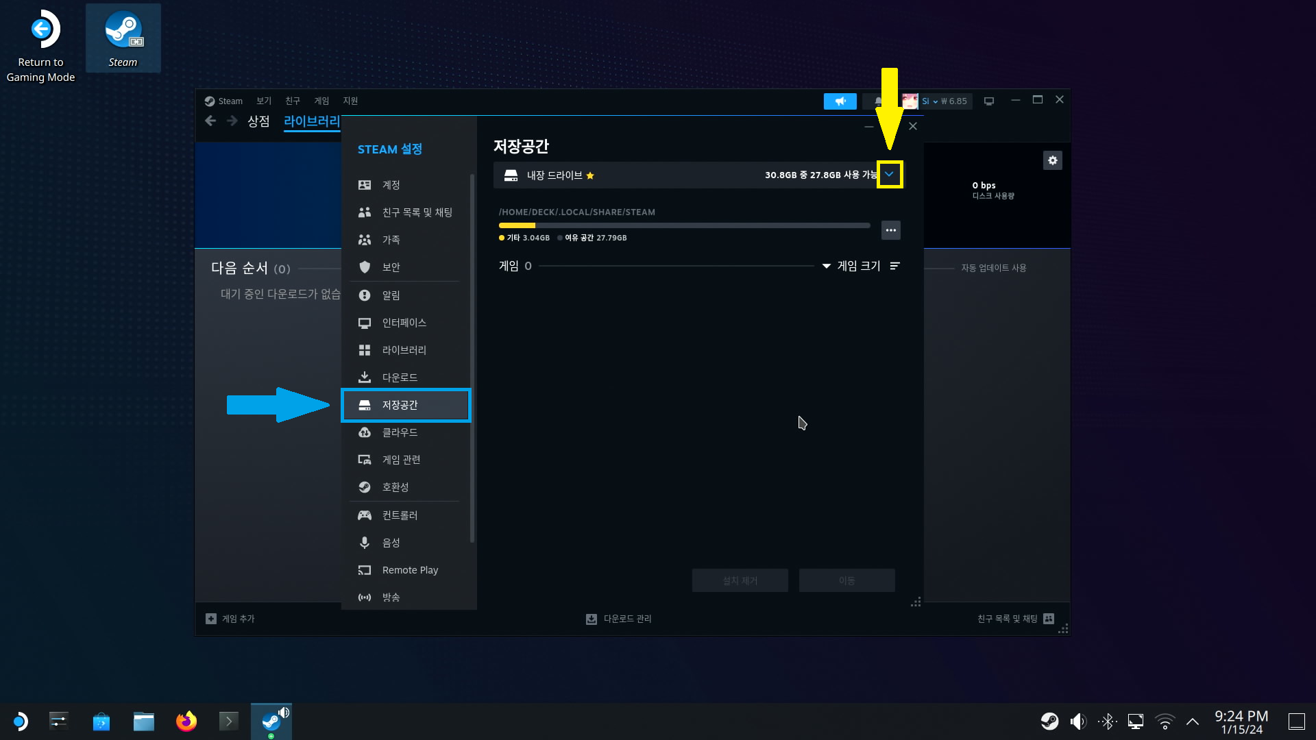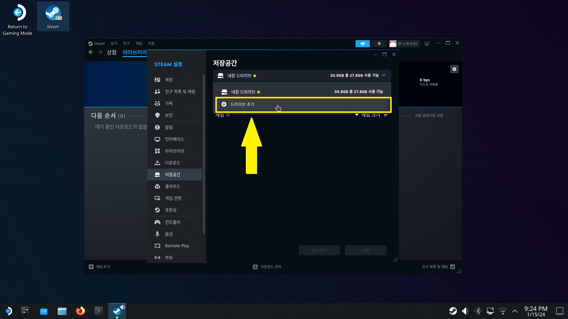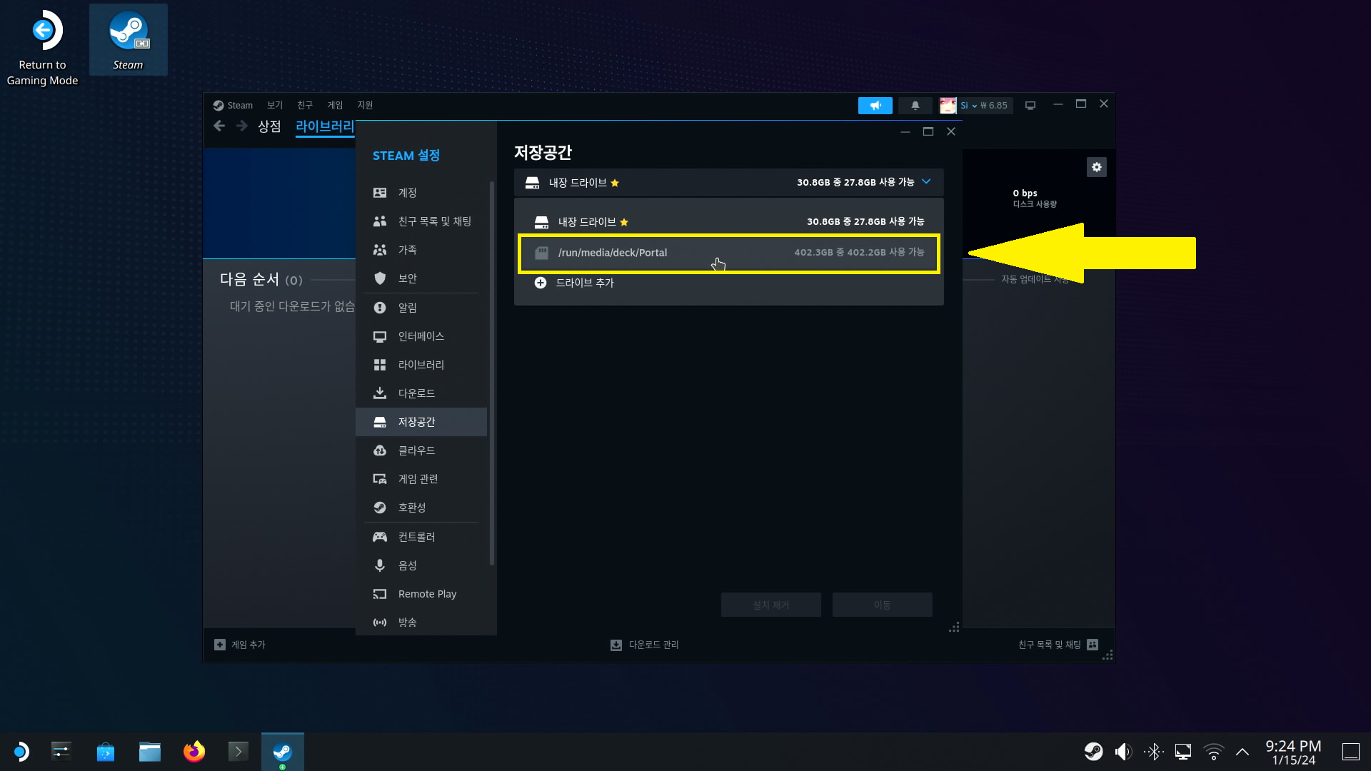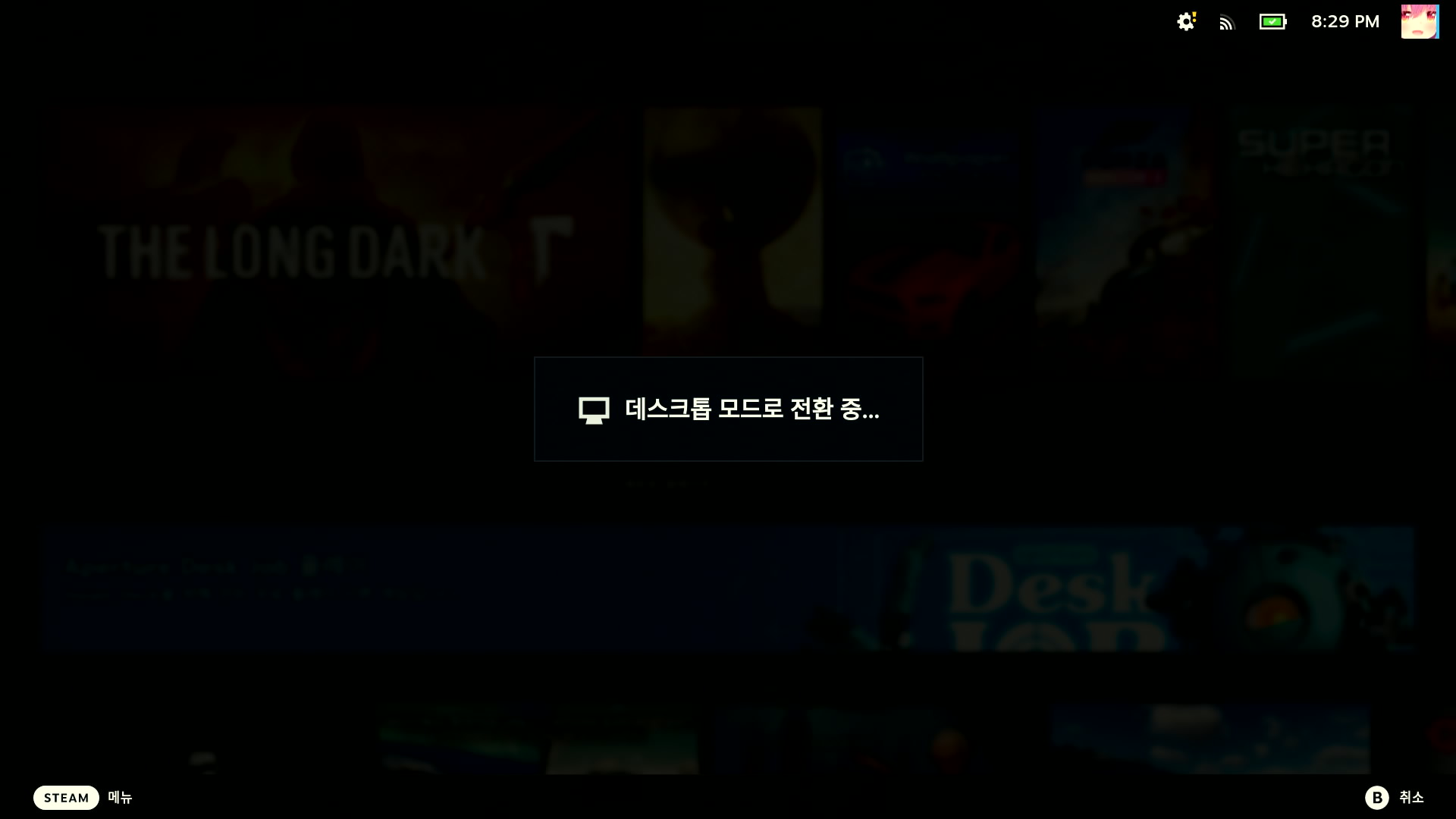 다시 스팀덱을 데스크톱 모드로 전환합니다.