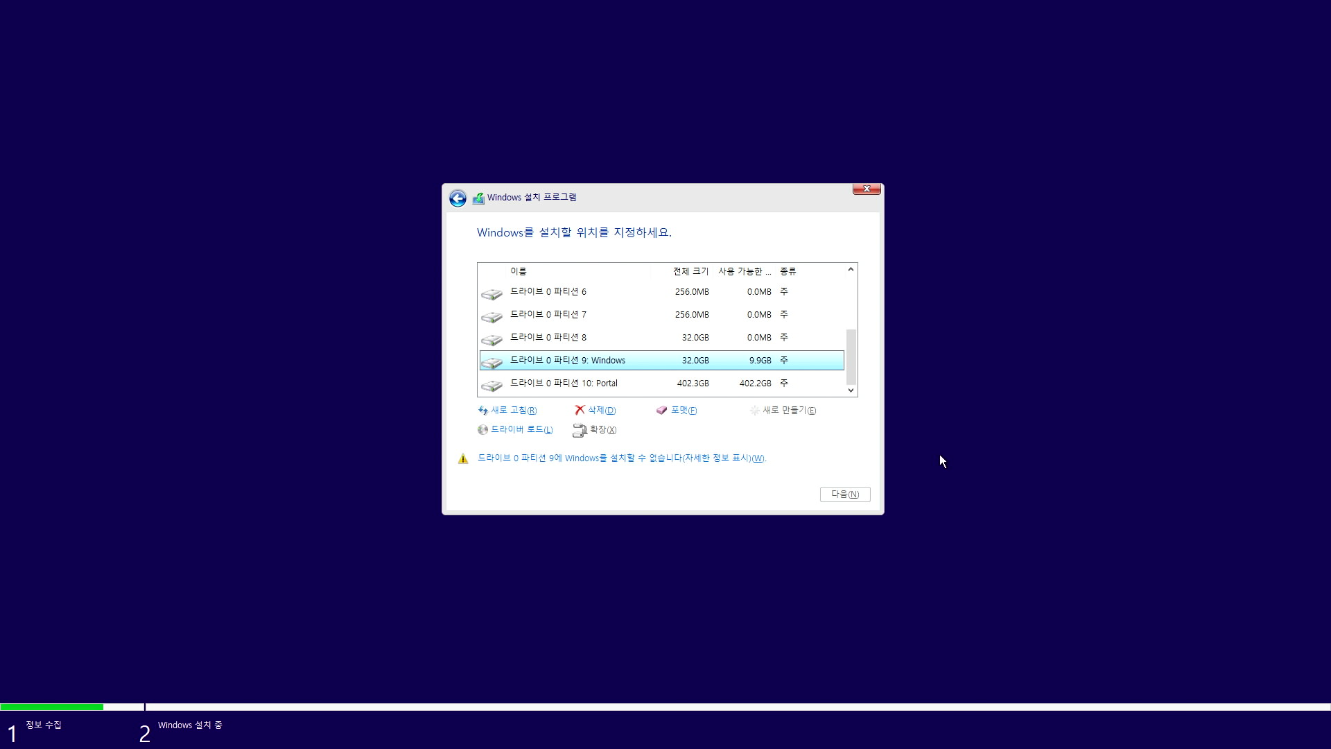드라이브 0 파티션 n:Windows <- 를 선택합니다.
