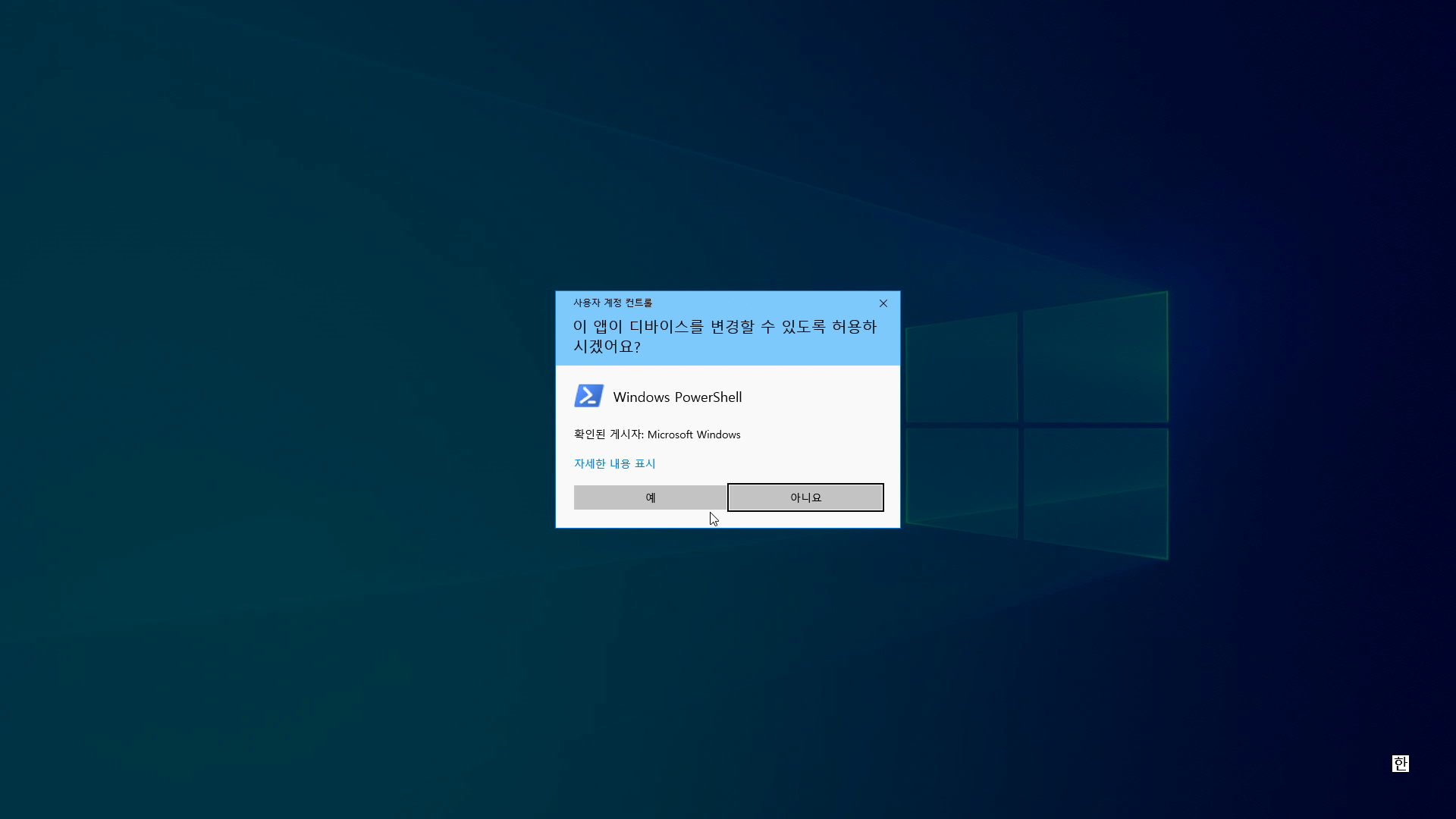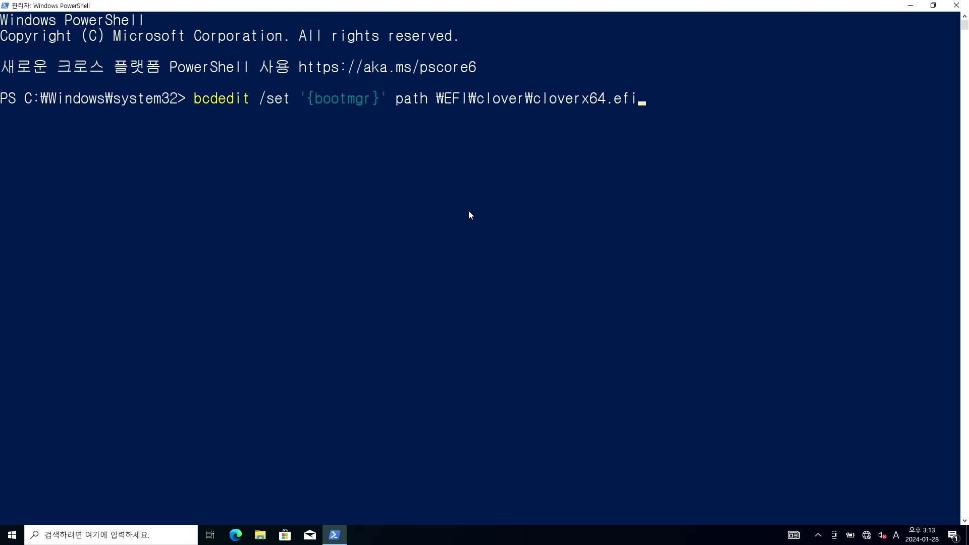 아래 사진처럼 파워쉘 창이 뜰 것입니다. 가독성을 위해 확대하겠습니다.