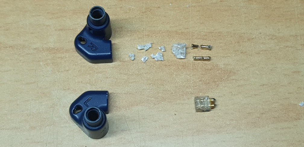 박리가 다 된 이어폰 하우징의 모습