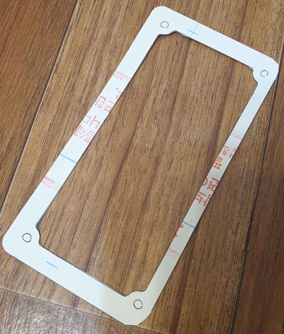 잔여물 안 남는 보호테이프를 파워가이드에 잘라 붙입니다.