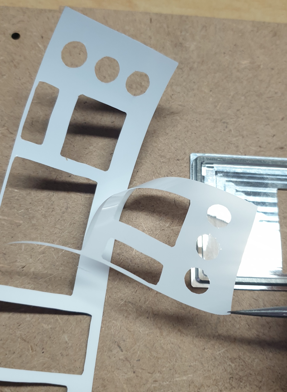 핀셋으로 스티커 끈끈이 보호필름을 떼줍니다.