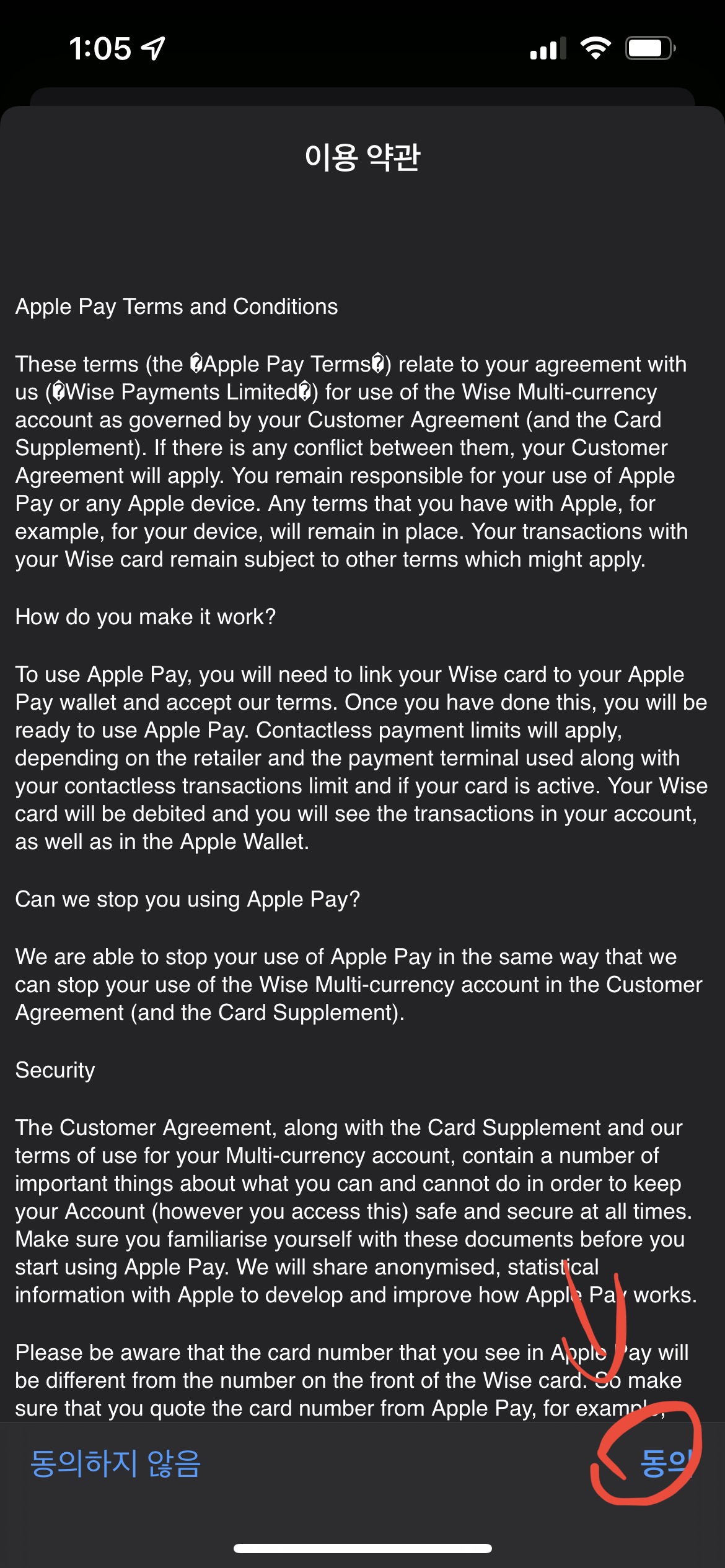 이용 약관이 뜨면 약관을 잘 읽어보고