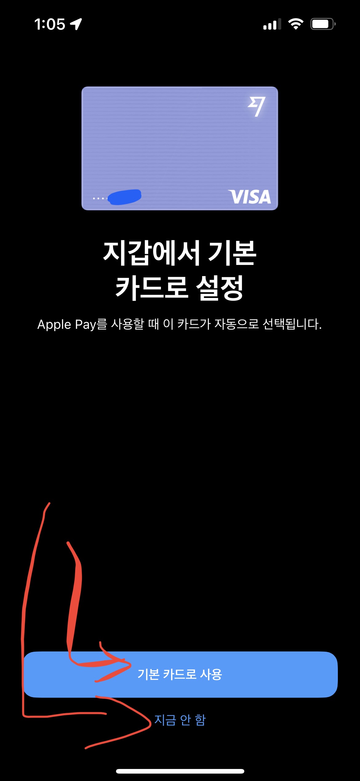 기본 카드로 사용을 누르면