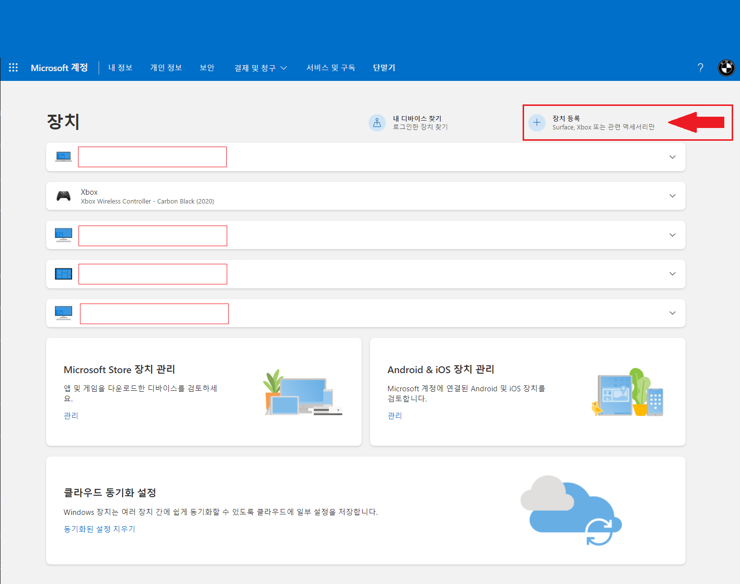 로그인 후 우측 상단의 장치 등록을 눌러줍니다.