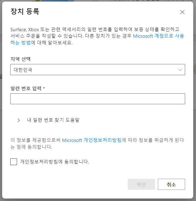 어디에 있는지 모르겠다면 '내 일련 번호 찾기 도움말'을 클릭합니다.