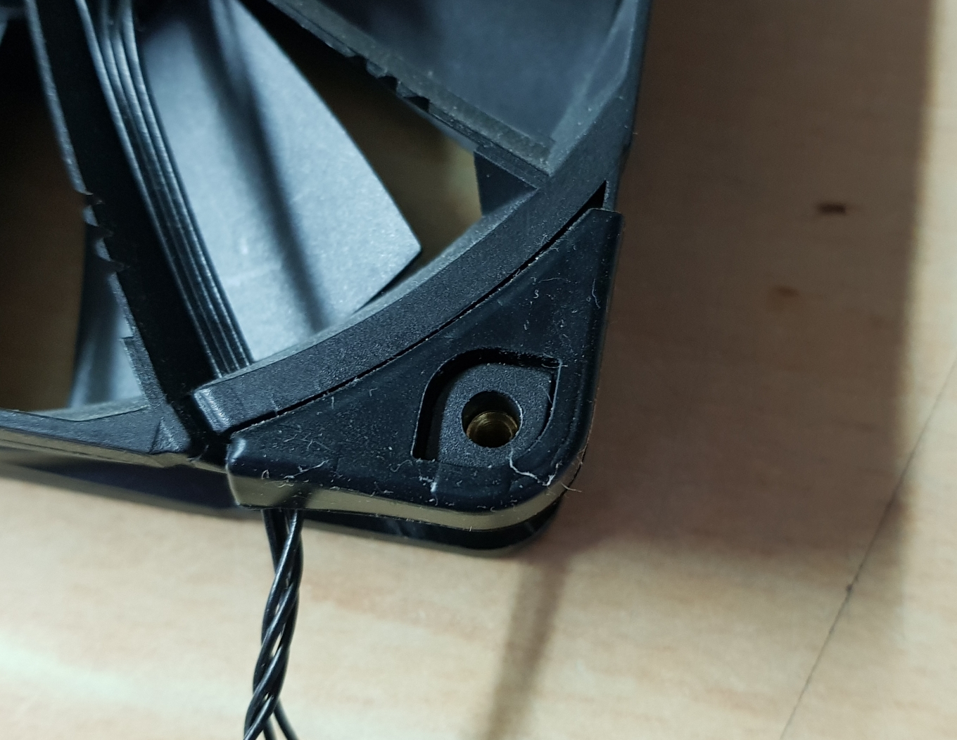 이 태핑스크류 나사는 팬의 몸체를 파손시키며 팬과 케이스를 고정합니다.