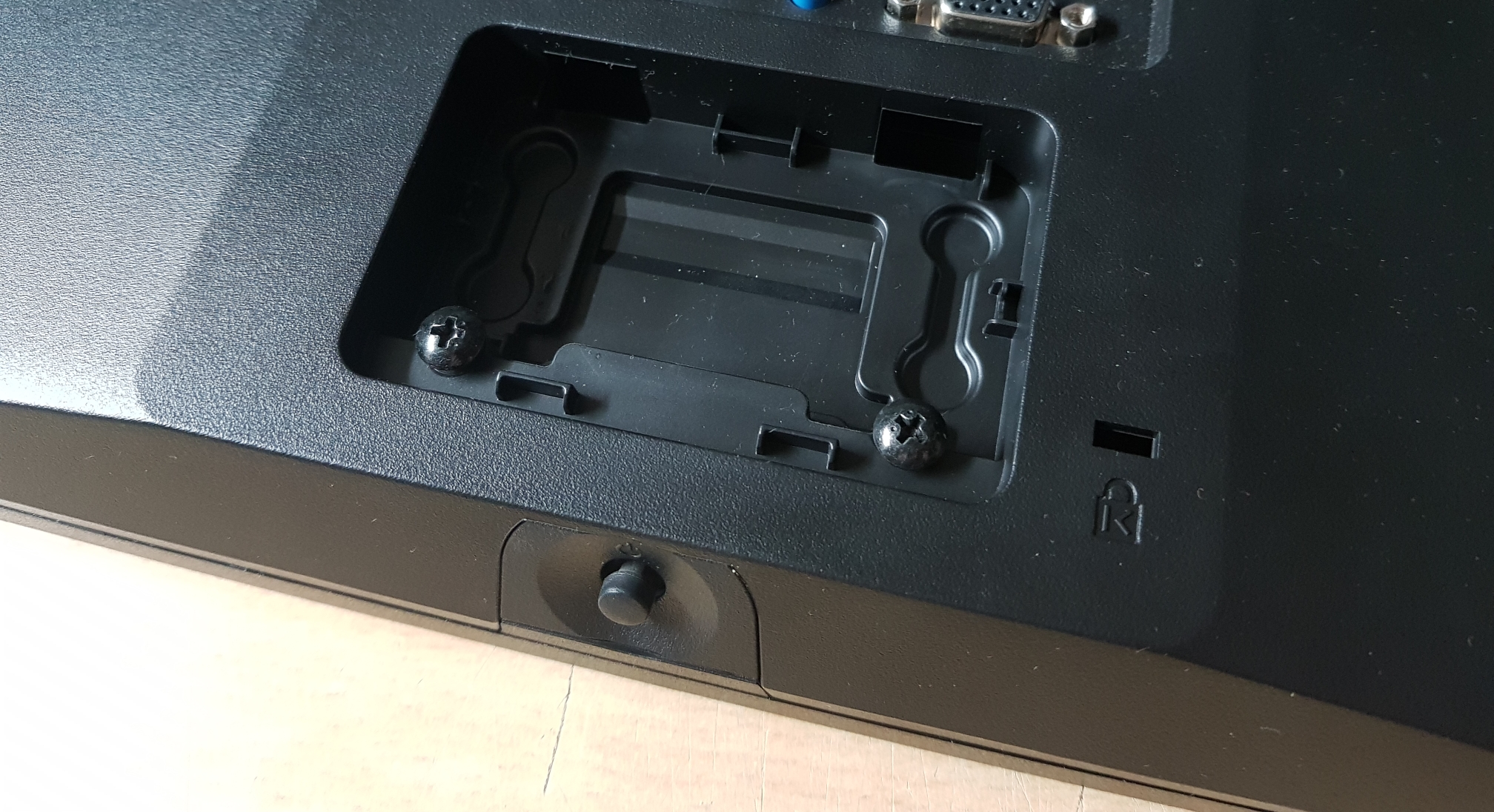 플라스틱 사출물과 금속부품들이 모니터를 지지하고