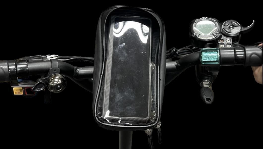 킥보드에 자전거용 휴대폰 거치 파우치를 만들고 장착했습니다.